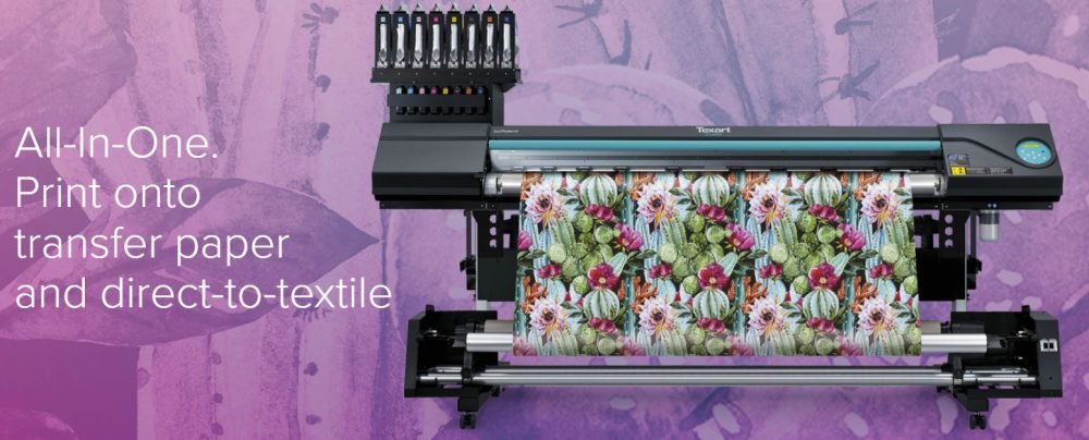 The award-winning Texart RT-640M is a multi-function large format sublimation printer, cleverly designed to enable printing both directly onto transfer paper and direct-to-textile within one single affordable device.