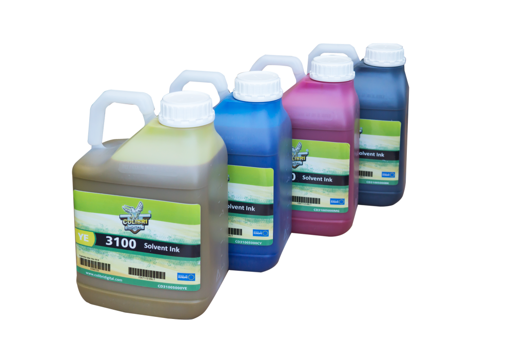Colibri 3100 series inks are True Solvent ink. It is a flexible, multi-purpose ink, which jets well through mid-sized drop-volume print heads which many printer manufacturers use today. 3100 has outstanding jet ability at higher printing frequencies and longer open time for total printing readiness when requested.